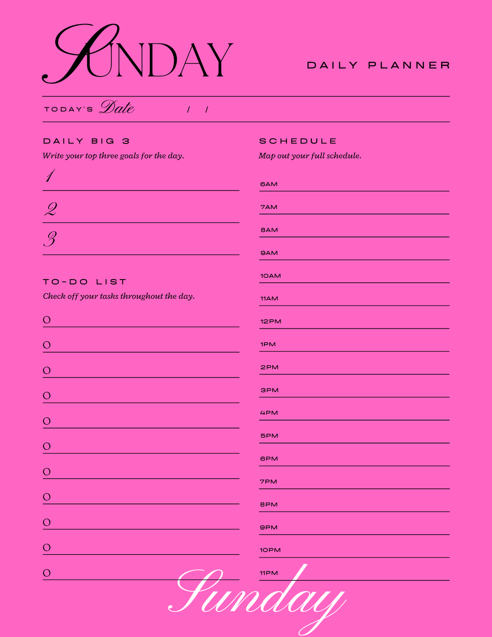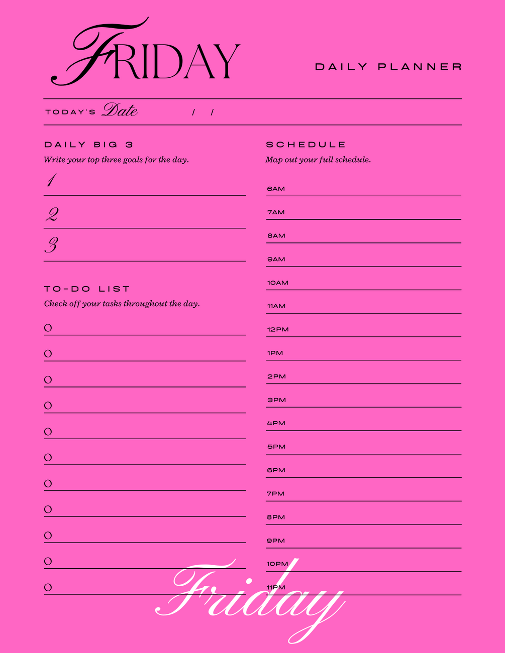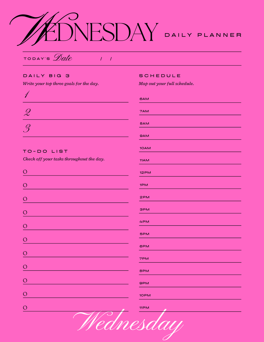 Pink printable daily planner