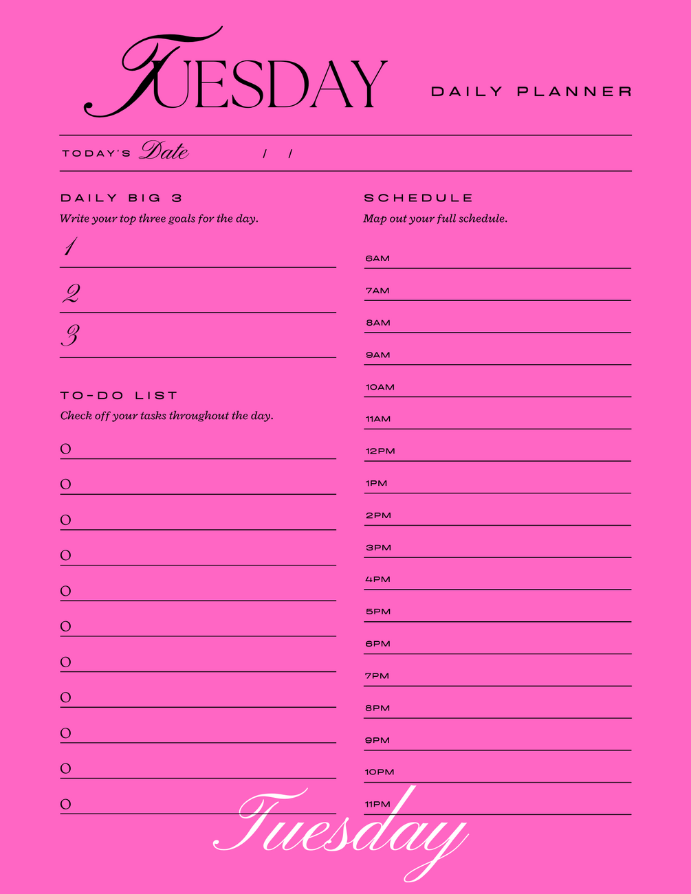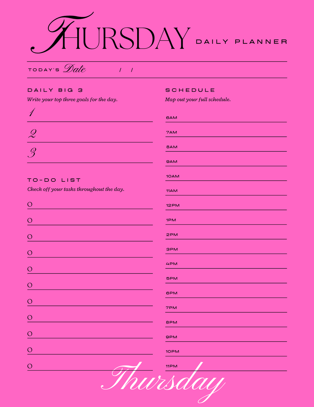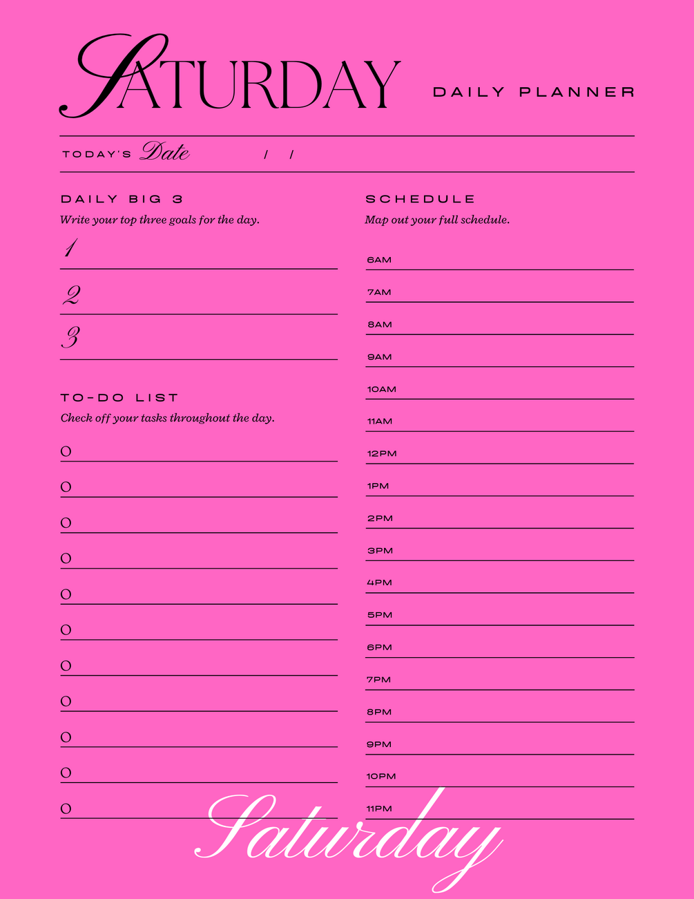 Pink printable daily planner